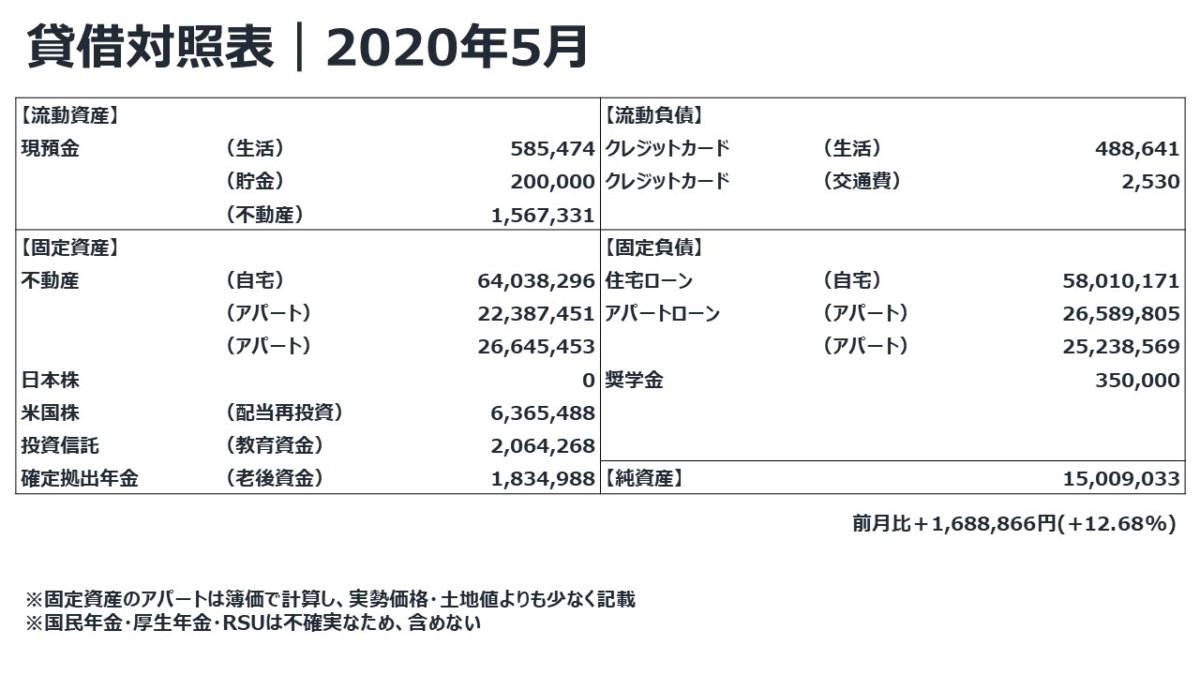 【2020年5月】緊急事態宣言の解除/どうなる世界経済、どうなる我が資産 2021 6/20 月次報告 2020年5月31日2021年6月20日 こんにちは、ノオトです。 ノオトついに、緊急事態宣言の解除がきましたね、世界経済がどう動くか、我が資産はどうするか注目です。 月次報告 この記事が気に入ったら フォローしてね! Follow @https://twitter.com/knowledge_notes Follow Me よかったらシェアしてね! 【ブログ】WordPress(ワードプレス)にAmazonアソシエイト広告を貼る方法 【不動産投資】2,800万で買ったアパートの無料売却査定をしてみた話 関連記事 【2021年7月】ブログの書き方を大きく変更 2021年7月31日 【2021年6月】初めてGoogle Adsenseからの入金がありました 2021年7月2日 【2021年5月】気分を新規一転、手帳を新調 2021年5月28日 【2021年4月】GWは自分を見つめ直す機会に 2021年4月30日 【2021年3月】バタバタ忙しい年度末|クレジットカード使いすぎ 2021年3月28日 【2021年2月】自宅マンション評価200万UP !?|順調に純資産増加中 2021年3月1日 【2021年1月】株高により純資産9%UP/新年でブログ英語も再開し習慣作りの一カ月 2021年2月6日 【2020年12月】1年無事に終わりました/コロナで日常が一変するもよいことが多かった1年 2021年1月6日