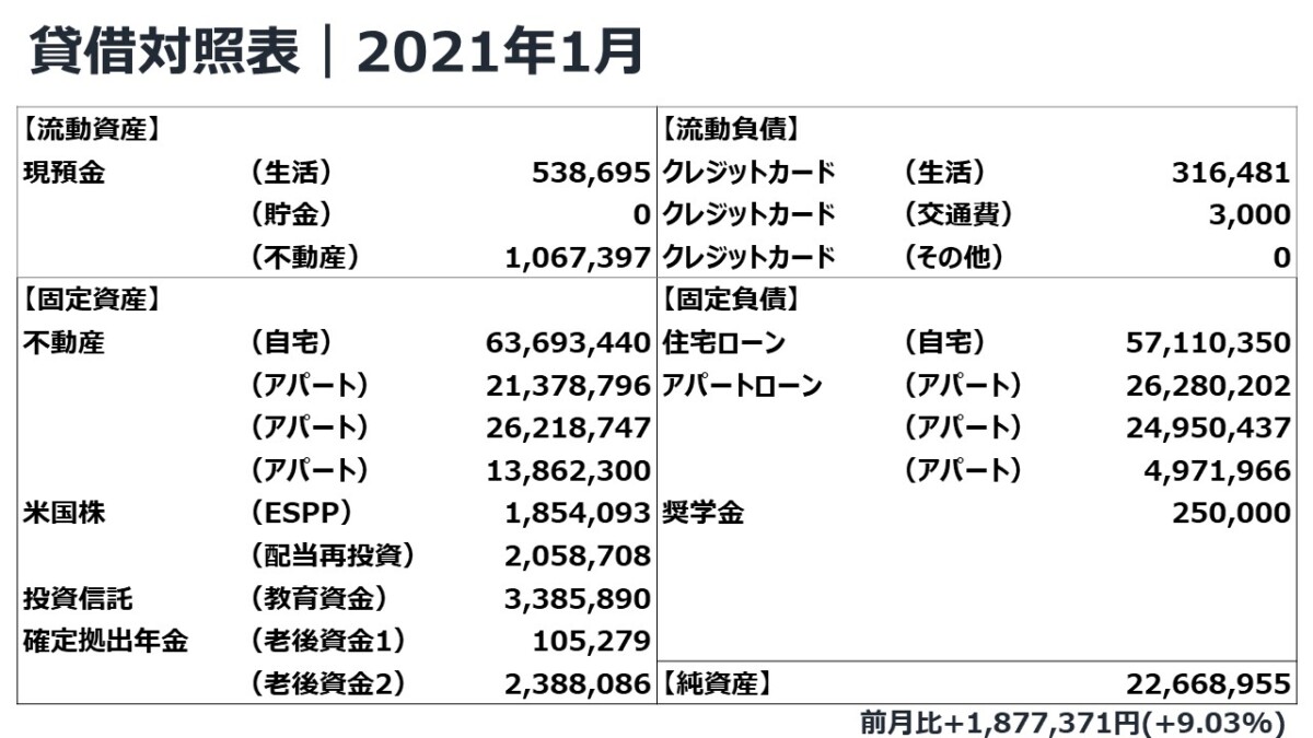 2021年1月の貸借対照表