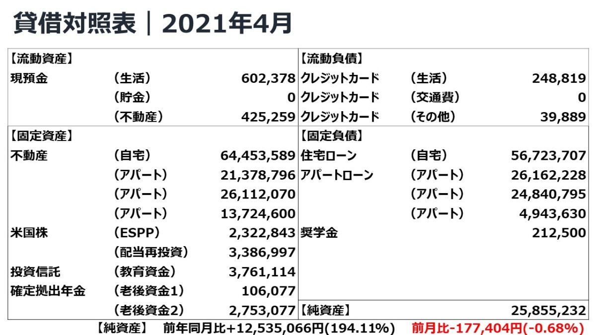2021年4月の貸借対照表